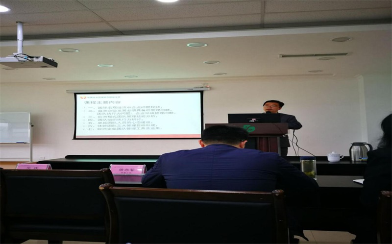 徐雨教授運用舉例的方式生動地描述、講解企業(yè)管理、團(tuán)隊管理問題,員工都在認(rèn)真做筆記,徐雨教授正在闡述課程主要內(nèi)容。